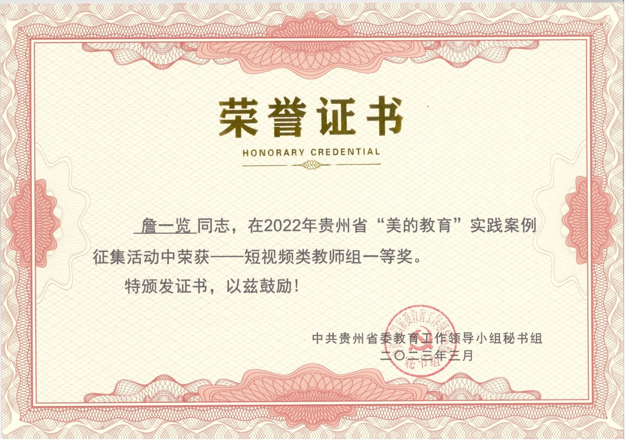 获奖证书
