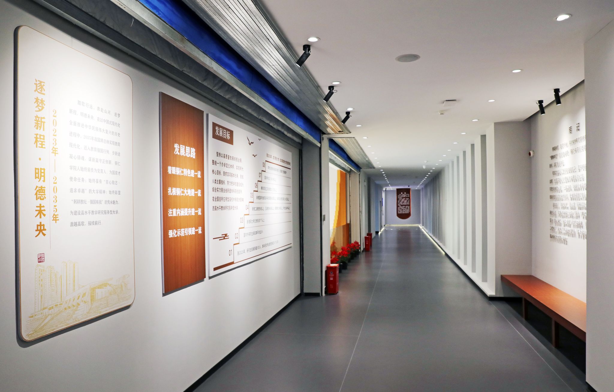 校史馆建设从项目启动到竣工,是不断挖掘整理学校历史的过程,也是不断认识理解办学理念的过程,更是不断深化丰富明德精神的过程。学校本着高起点、高标准、高档次的建馆原则,按照立足当前、着眼长远、凸显特色、技术先进的设计要求,将校史馆打造成为学校对外形象的展示平台、“明德”精神的教育平台、历届校友的交流平台、学校校史的研究平台,在推进学校办学治校和立德树人高质量发展中发挥积极作用。通过校史馆的建设,必将进一步引领全体师生,全面贯彻落实党的教育方针,坚持社会主义办学方向,肩负为党育人、为国育才使命任务,为把学校建成为特色鲜明的高水平应用型大学而接续奋斗。