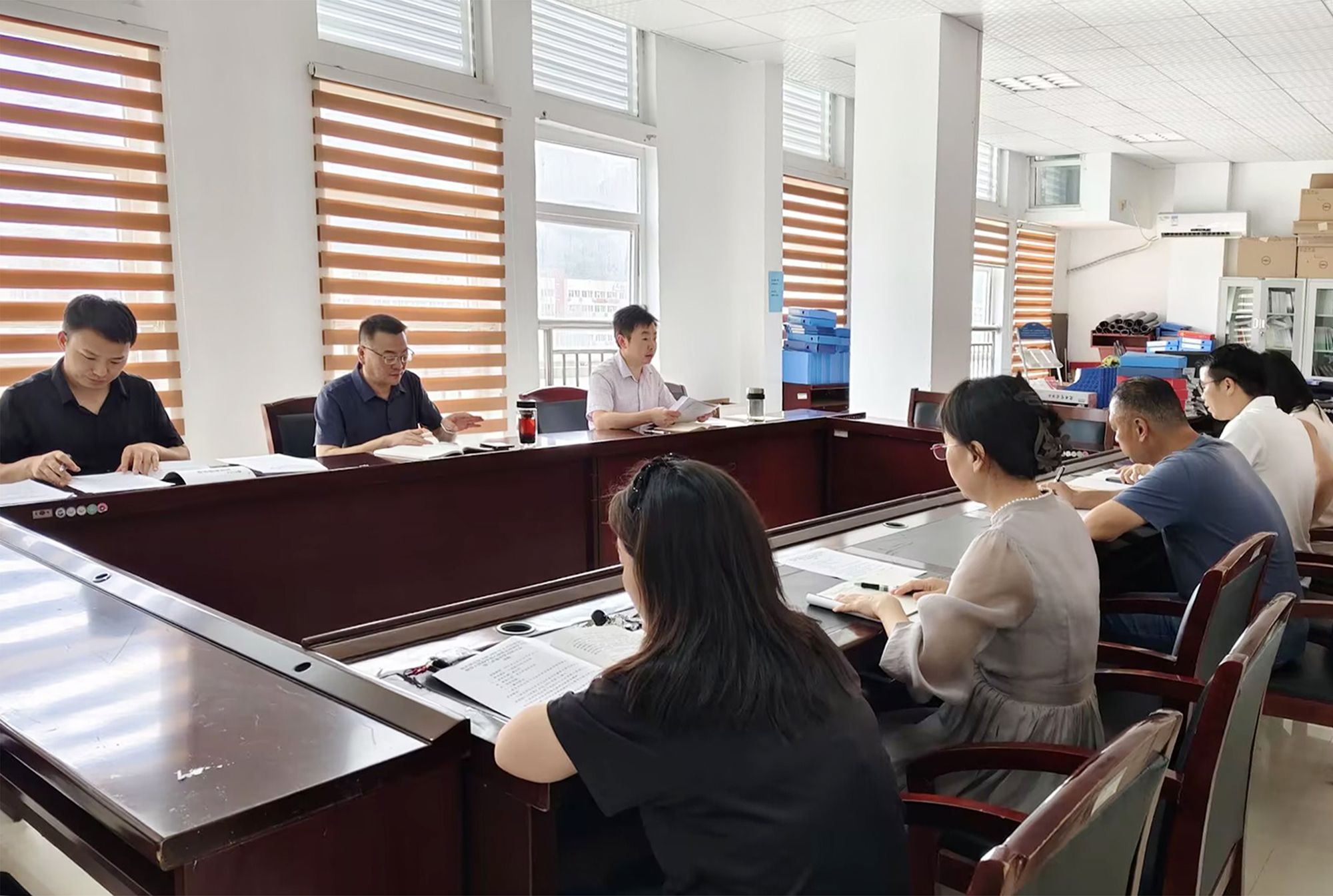 6月11日下午,机关第五党支部在行政楼8505会议室召开党员大会暨深入贯彻中央八项规定精神学习教育第三次集中学习研讨会。党委委员、宣传部部长叶丹以普通党员身份参加会议,党支部书记梁光华主持会议,党支部全体党员参加会议。