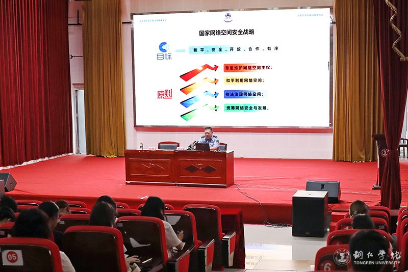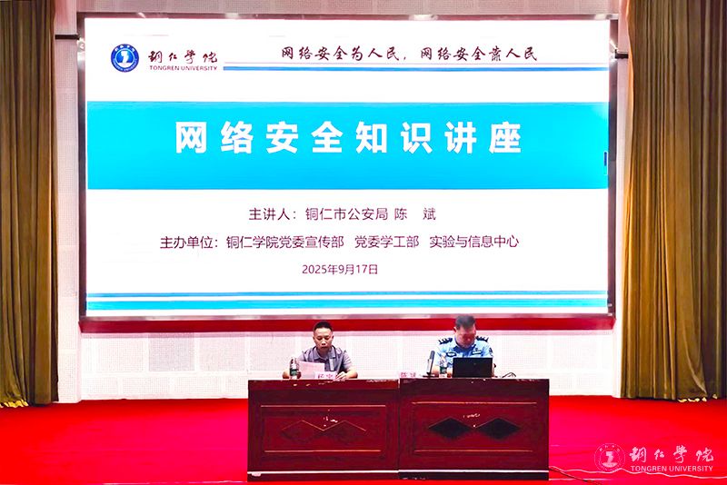 为切实提升师生的网络安全意识和处置能力,筑牢网络安全屏障,根据beat365官网开展2025年国家网络安全宣传周工作总体安排,9月17日,beat365官网在梵净山人文生态馆举办了网络安全专题讲座,特邀铜仁市公安局网安支队技保大队大队长、市大数据专家陈斌警官为beat365官网师生进行网络安全及预防电信诈骗宣讲。实验与信息中心主任杨宇主持讲座。各部门和学院网站管理员、应用系统管理员,各学院学生代表近300人参加讲座。