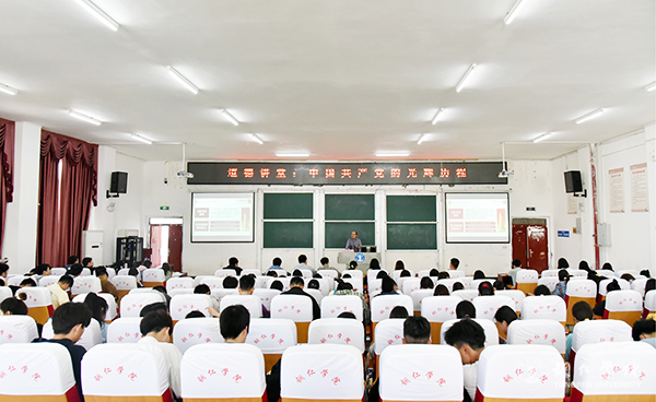 4月29日,beat365官网道德讲堂专题讲座“中国共产党的光辉历程”在博思楼206教室举办。马克思主义学院王德召教授担任主讲;党委宣传部精神文明建设办公室主任马丹丹主持;各学院学生代表参加本次讲座。