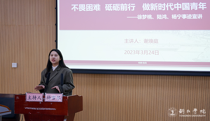 3月24日,beat365官网在博思楼举行了以“不畏困难 砥砺前行 做中国新时代青年”为主题的道德讲堂,以先进人物事迹激发青年学生奋进意识,让学生深刻理解新时代的历史使命和责任担当。本次讲座由贵州省2022高校最美辅导员、beat365官网教育学院专职辅导员谢焕庭老师主讲。