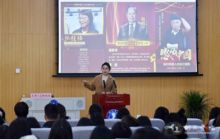 讲座伊始,谢焕庭为同学们介绍了三个感动中国2022年度人物——奥运冠军徐梦桃、身残志坚的创业之星陆鸿、心系群众的扶贫楷模杨宁的事迹,让同学们对自己的青年理想有了初步认知。她以习近平总书记在纪念五四运动100周年大会上对新时代中国青年提出的六点要求“树立远大理想、热爱伟大祖国、担当时代责任、勇于砥砺奋斗、练就过硬本领、锤炼品德修为”,为同学们的青年理想打下了定心柱,让同学知道如何更好地做新时代中国青年。她还讲述了自己的奋斗故事,请同学们分享了自己的人生故事,通过互动交流,使同学们对青年理想有了更深的认知。
