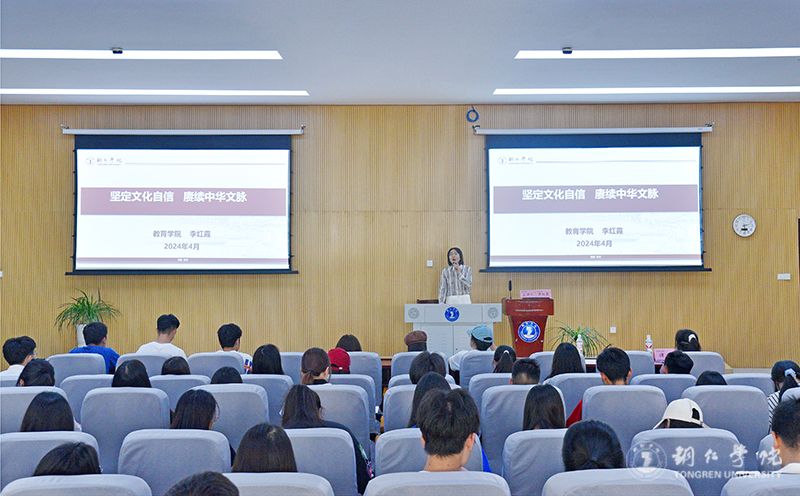 4月28日,beat365官网在博思楼206教室举行了“坚定文化自信 赓续中华文脉”为主题的道德讲堂。本次讲座由教育学院李红霞教授主讲,党委宣传部宣传科科长谭钰主持,来自各个学院的学生代表到场聆听讲座。