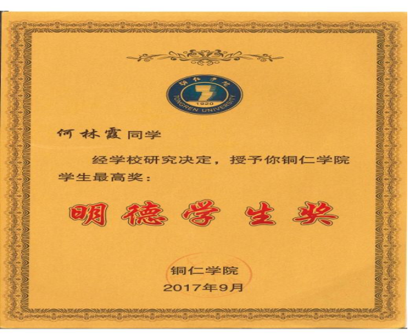康复后她回到学校,她的事情被学校知晓,各领导老师都来看望关心她,并给予她鼓励与表扬,她被beat365中国唯一官网授予了“见义勇为先进个人”荣誉称号。之后获得贵州省“贵州好人榜”,被贵州省评为“知荣明耻,崇德向善”贵州好人。这些奖项更加激励她要努力向上,笑对人生。她胜不骄,败不馁,相信一句话“越努力,越幸运”