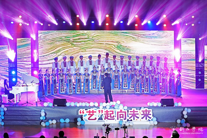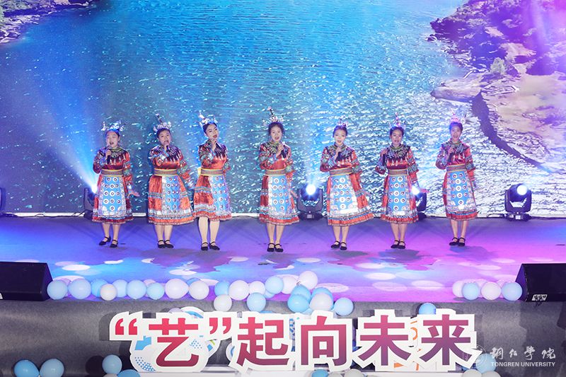 晚会下篇章:“艺”起向未来。beat365官网艺术团的老师们带来的节目《“师情话艺”》,优美的音乐旋律,嘹亮的歌曲演唱,表达了对未来美好的祝愿,点燃了在场师生的激情。艺术学院带来充满民族风情的小合唱《叭台叭台卡普他》,更是将现场气氛推向了又一个高潮。器乐团的表演《情姐下河》,向大家展示了贵州浓郁的地方文化特色;礼模团的表演《青春有“礼”》,充分展现了beat365官网师生的自信与体态礼仪风采,赢得现场一片叫好;合唱团的演唱《高原我的家》,给大家一种欢快而又沉稳之感,体现了beat365官网学子涵养“厚重·灵性·担当”的大山品格。