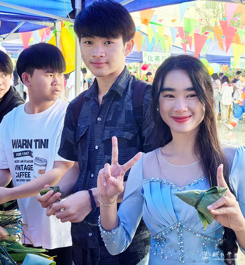 “这样才能包出好看的形状。”“这样才能把绳子扎得更紧,煮的时候不容易露馅。”在包粽子体验现场,经验丰富的食堂阿姨边包边向同学们传授经验。来自铜仁几所高校的外国留学生,也纷纷加入到活动中,与中国学生一起,学习包粽子,体验端午节文化,感受中华优秀传统文化的魅力。大家看着一个个包好的粽子,喜笑颜开,欢声笑语不断。每一颗粽子,都承载师生着对历史的敬畏、对文化的热爱和对未来的期待。