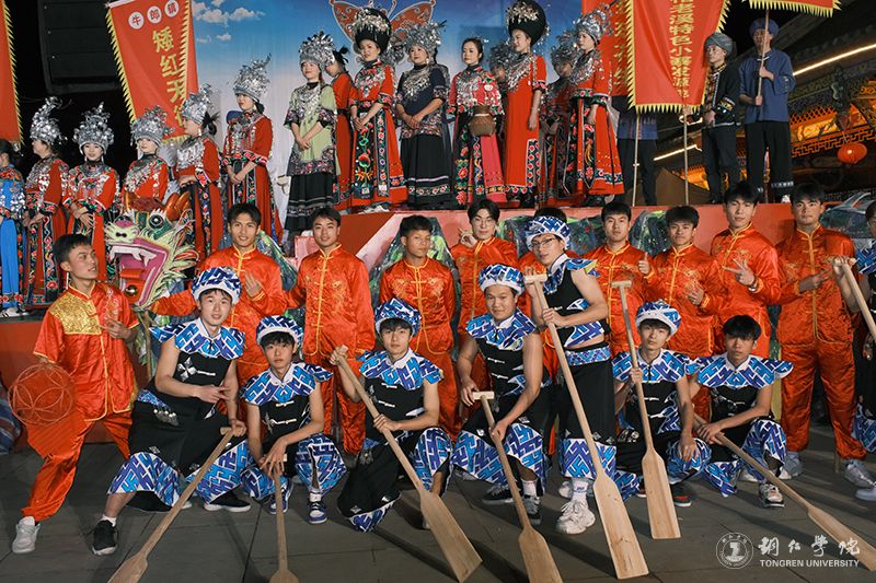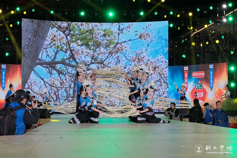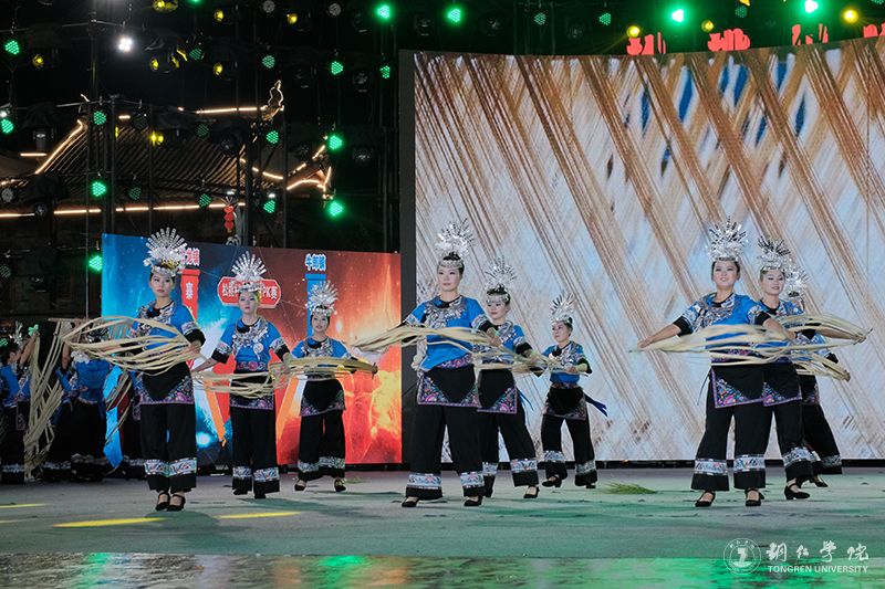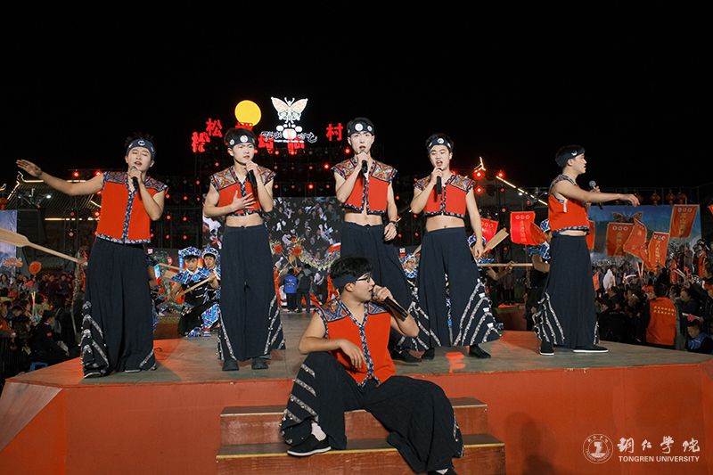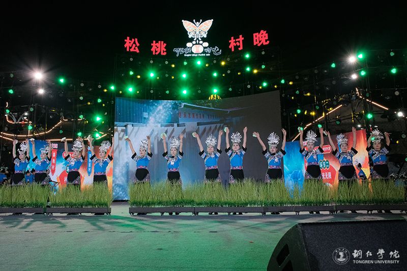 作为学校思政教育与实践育人的创新载体,此次文化艺术服务团紧扣乡村振兴主题,将专业教学与地方文化传承深度融合。情景歌舞《众人划桨开大船》以气势磅礴的舞台呈现,通过苗家儿女齐心协力建设家园的动人场景,生动诠释了民族团结进步的深刻内涵。由田淼、杨松慧创作的苗族女子群舞《桐子花开》以beat365官网在第十八届“挑战杯”全国大学生课外学术科技作品竞赛中荣获省级三等奖作品《人类文明新形态创造中的民族生态智慧叙事——以松桃牛郎桐壳碱面为个案》的研究报告为蓝本,演员们用曼妙舞姿演绎桐花绽放的生态之美,展现桐壳碱面传统手工技艺与乡村产业发展,彰显了苗族文化生生不息的传承力量。歌曲联唱《山水家乡美》(《有我》+《家乡美》+《山水家乡美》+《不忘初心》)则巧妙融入苗族情歌与新时代旋律元素,青年学子用清亮的歌喉唱响武陵山区的绿水青山,抒发对乡村振兴美好图景的深情礼赞。