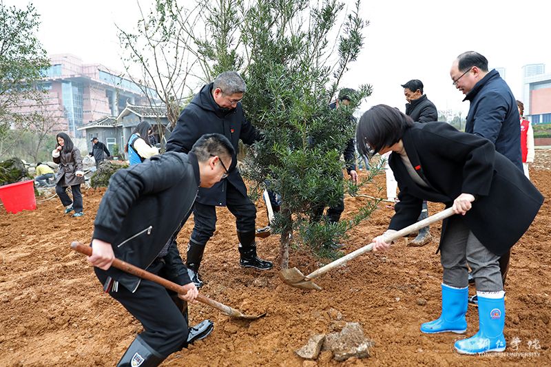 在举行简短的启动仪式后,植树活动正式开始。各学院师生按照划定区域,分工协作,相互配合。挥锄挖坑、扶苗填坑、培实新土、浇水定根……大家热情高涨,干劲十足,一棵棵苗稳稳地种植在铜院的土地里。此次活动,大家积极投身植树护绿行动当中,用劳动诠释着对铜院的热爱,在活动中享受自然的春意