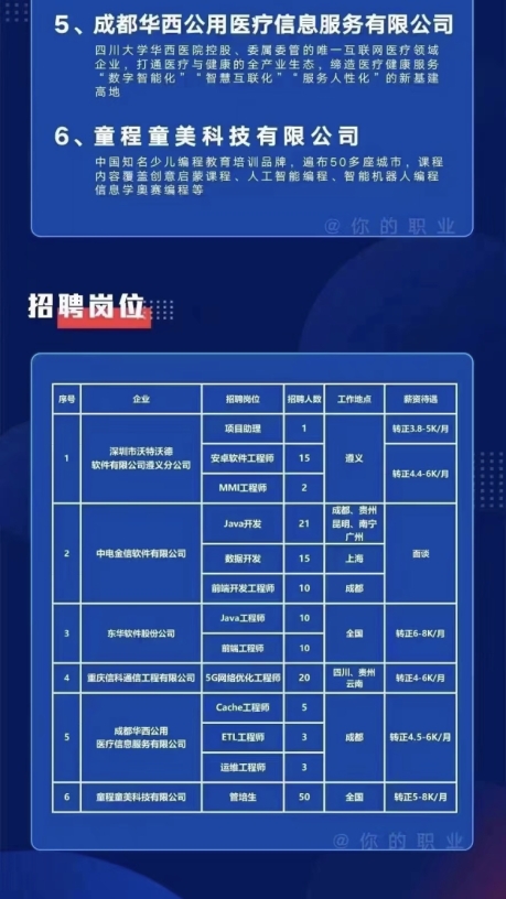 招聘会开始,大数据学院招生就业联络员首先详细介绍了我院2022届毕业生就业情况,及参与本次招聘会的企业东华软件股份公司、重庆信科通信工程有限公司等6家企业,本次招聘会由达内集团承办。随后,达内集团职业发展经理罗远、教学经理陈雷雷及各企业负责本次招聘的老师开展了线上宣讲,就同学们广泛关注的薪资待遇、晋升空间等问题予以解答。会后,用人单位收取了同学们的电子简历,陆续对我院参加招聘的毕业生进行面试。据悉我院18数据科学与大数据技术专业浦仕军等学生已收到企业offer。