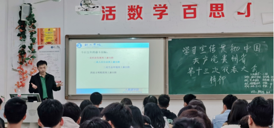 为认真学习贯彻省第十三次党代会精神,按照学校党委统一部署,5月23日,大数据学院副书记、院长颜宝平同志在明理楼A205教室为2021级数学与应用数学1班、2班学生宣讲贵州省第十三次党代会精神。