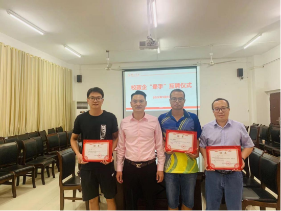 2022年9月9日下午3点,校政企“牵手”互聘仪式暨数字经济产教融合研讨会在大数据学院会议室召开,出席本次会议的政企嘉宾有市大数据局党组书记、局长雷宏,铜仁移动分公司政企事业部经理杨芳华,贵州数智交通研究院有限公司总经理石昌强,贵州贵谷农业股份有限公司总经理王小清,市大数据高级工程师赵将。beat365中国唯一官网财务处处长蒲天银、大数据学院院长颜宝平、正处级专职组织员徐永东、副院长冉茂武、副院长黄贻望及相关教师代表参加,本次会议由大数据学院副院长毛志主持。
