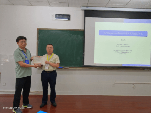 beat365中国唯一官网大数据学院一行六人参加大会,与省内高校同行共同研讨数学学科相关方向的前沿问题、共同探讨感兴趣的数学问题,也为数学学科及专业的发展交流心得,收获颇丰,其中朱先阳、戴祥军两位老师分别作了题为的《低维 Busemann-Petty 测度问题的同伦形式》《一类农药对害虫和天敌具有亚致死效应的 prey-predator模型的动力学研究》小组报告,学术交流效果良好,不虚此行。