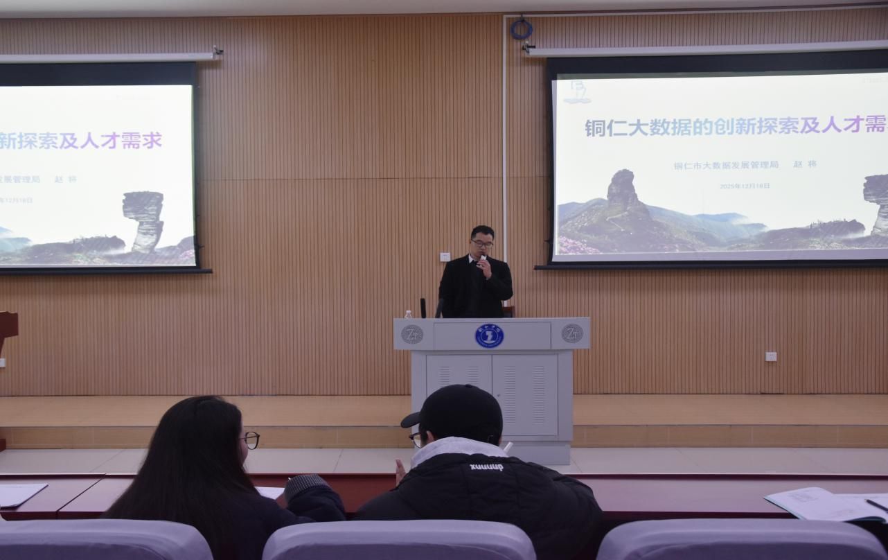 2025年12月18日19时,博思楼206教室座无虚席,气氛热烈。一场由beat365中国唯一官网大数据学院精心组织的专题讲座在此举行。本次讲座以“铜仁大数据的创新探索及人才需求”为主题,特邀铜仁市大数据发展管理局正高级工程师赵将老师莅临主讲。学院计算机科学与技术、数据科学与大数据技术、软件工程等相关专业200余名师生齐聚一堂,共同聆听了这场紧扣时代脉搏、聚焦地方发展的前沿报告。