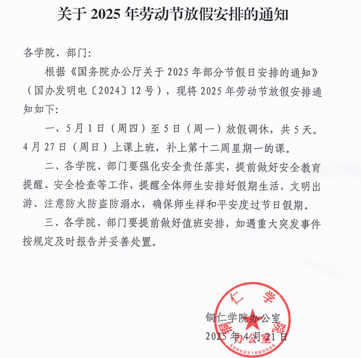 关于2025年劳动节放假安排的通知