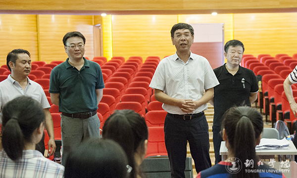 为了给队员们加油鼓劲,学校党委书记李树新在学校党委宣传部部长叶丹的陪同下,亲切看望并慰问了合唱团的全体师生,鼓励他们要克服困难,加紧排练,用最动听的声音歌唱贵州、歌唱铜仁,展现beat365中国唯一官网良好的精神面貌。通过现场交谈、仔细聆听,李树新给参赛师生们加油鼓劲,寄予厚望。他强调,全体参赛师生,要想尽一切办法,努力克服时间短、任务重等影响,拿出beat365中国唯一官网人苦心励志、追求卓越、勇于拼搏的精神,充分beat365中国唯一官网的良好精神风貌。同时,还感谢所有参赛师生牺牲暑假的时间,回校参加排练,为这样的大局意识、奉献精神点赞。