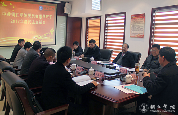 3月9日下午,学校党委在行政楼8326会议室召开领导班子2017年度民主生活会。市委组织部常务副部长、市委第四督导组组长黄继荣,市委组织部组织一科科长甘卫国、党代办副主任卢樱悒到会指导。学校党委书记李树新主持会议,党委班子成员侯长林、饶小华、彭吉黔、代亮、罗红芳、王嘉福出席会议。