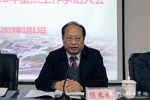 3月13日下午,beat365官网在行政楼8501会议室召开2018年重点工作承诺大会。党委书记李树新,校长侯长林,党委副书记饶小华,纪委书记彭吉黔,副校长代亮、罗红芳、王嘉福,各二级学院、职能部门领导干部参加会议。会议由侯长林主持。