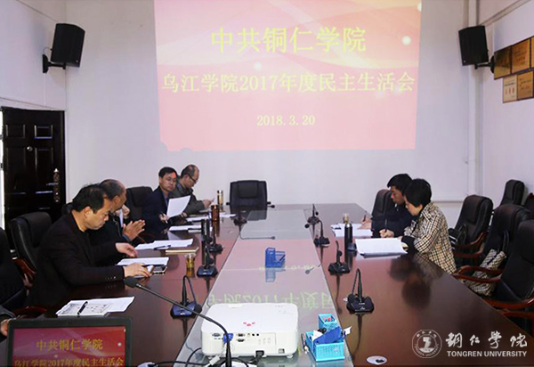 3月20日,乌江学院党总支领导班子在该院行政楼三楼会议室召开2017年度民主生活会。学校党委委员、副校长罗红芳,机关党委书记邱仕虎到会指导;乌江学院党总支副书记张敬忠、邓崇权,副院长王红兵、郑刚,原副院长赵成刚参加会议。会议由邓崇权主持。