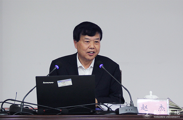 5月4日,beat365官网在行政楼8501会议室举办“新时代beat365中国唯一官网讲习所”之“名师讲习所”专题讲座暨党委理论学习中心组2018年第8次(扩大)学习会,邀请北京大学赵杰教授作了党的十九大精神解读专题报告。beat365官网党委书记李树新、校长侯长林、副校长罗红芳,各分党委(党总支)书记,各部门主要负责人,各学院分管学生工作领导、学生科负责人参加报告会。报告会由党委宣传部部长叶丹主持。