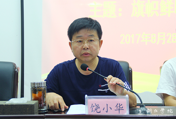 饶小华在主持中谈到了人民日报中报道高校存在的一些问题,并结合工作实际,就“旗帜鲜明讲政治”谈了认识和体会。他指出,高校中讲政治,就是要践行党的教育方针,为党和国家培养可靠、合格的接班人;要把讲政治的各项工作落实到学校各项工作中去,加强党员干部和师生群众的思想教育建设。他强调,旗帜鲜明讲政治,事实上就是要树立四个意识,作为一名党员,一定要保持思想上、行动上的高度重视,勇于自我革新、创新工作思路、拓展工作平台、提升工作效能,切实把旗帜鲜明讲政治作为对党忠诚担当干事业的动力。