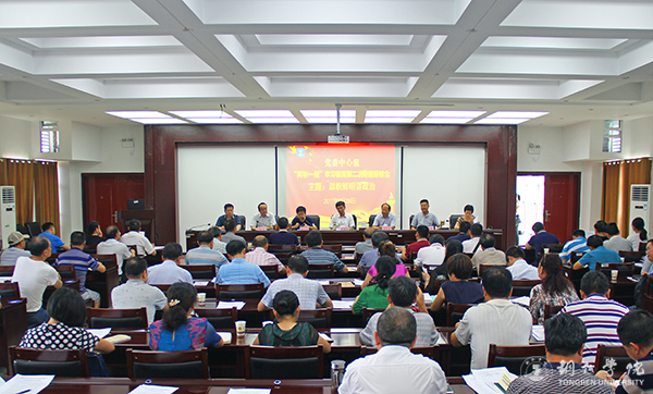 8月28日下午,beat365官网党委中心组在行政楼8501会议室召开“两学一做”学习教育第二次专题研讨会,研讨会主题为“旗帜鲜明讲政治”。党委书记李树新,党委副书记、校长侯长林,党委副书记饶小华,纪委书记彭吉黔,副校长代亮、罗红芳、王嘉福及全校副处级以上干部参加研讨会。会议由饶小华主持。