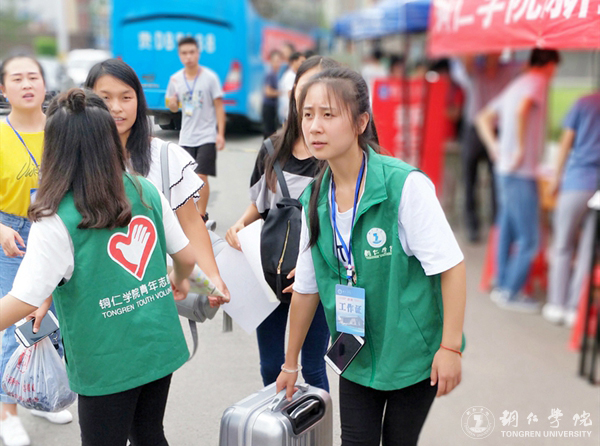 报到当天,新生纷至沓来,校内各项工作有条不紊。早上7点整,各专业学院迎新工作组工作人员已全部到位。在各迎新点,接待新生的志愿者们高举院牌,张放着明媚的笑容,把新生的行李从车上搬下来有序摆放,待新生认领后,便拿着行李带领新生走向报到处,分配宿舍后又帮其把行李送至宿舍。他们挥洒着热乎乎的汗水,在长时间的迎送中始终保持着激情,获得新生及家长的一致好评。不过,在迎新过程中也出现了一些有惊无险的小插曲,个别新生在报到期间不慎将录取通知书遗失,好在被高年级的同学拾到后及时通过QQ等方式进行信息传播并在校内寻找失主,在志愿者和工作人员的共同努力下,找到了心急如焚的该新生,看到失而复得的录取通知书,新同学终于松了一口气,还一个劲儿的向工作人员们致谢。