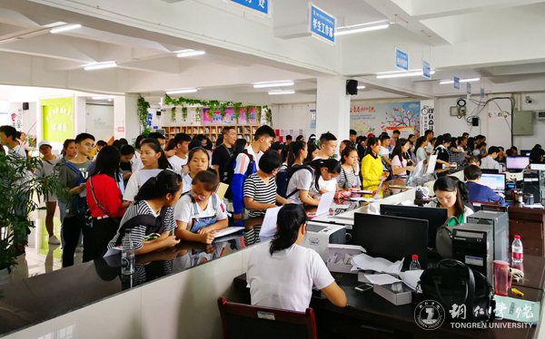 排队办理入学手续的新同学们
