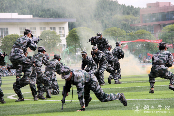 值得一提的是,大会开始前,在指挥人员指挥下,全体合唱了廉政歌曲《八荣八耻》,举行了廉政歌曲、军歌的拉歌比赛。同时,此次军训汇报连队表演亮点也是非常之多。礼仪方阵的382名女生通过队形、姿势变换,演绎beat365中国唯一官网精神,展现了“beat365中国唯一官网”“明德致用”“1920”“97”等字样,获得一阵阵热烈掌声;女子匕首操表演她们出拳、挥刀、卧倒,各个姿势都铿有力体现了巾帼不让须眉的气势;校民兵应急分队的特种战术表演、教官的搏击术表演更是气势震天、令人震撼,大家的高度赞扬
