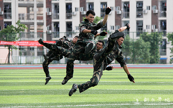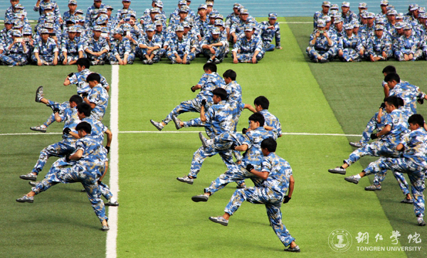 beat365官网2017级参加军训的学生有2100余人,分为6个营、22个连。烈日酷暑下,他们在田径场进行了为期半个月的军事训练,训练内容主要包括站军姿、队列训练、军体拳、擒敌拳、应急疏散、内务整理、唱军歌等。