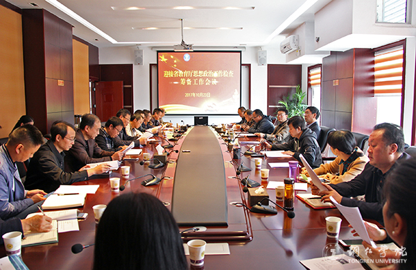 会上,李树新作了讲话。他说,全校上下要统一思想、提高认识、明确方向,按照指标体系,抓好落实,做好迎接思政检查的各项准备工作,以良好的精神状态、饱满的工作热情迎接思政检查组的到来。他指出,学习宣传党的十九大精神是今后一段时期最重要的政治任务,各学院、部门要认真制定学习宣传十九大精神的实施方案,自觉加强学习,把学习宣传工作落到实处,以更高的要求、更高的标准来推动高校思想政治教育工作。他强调,要进一步配合好省委巡视工作,积极抓好整改落实;要严格按照十九大的新要求、新理念,把党建工作放在心上,抓在手上;要努力探索,寻找党建工作新途径,高度自觉,做好党建工作,服务学校发展。