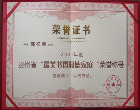 同年,郭征帆家庭和田仁碧还分别荣获了2022年度铜仁市“最美书香润德家庭”“好妈妈”称号。
