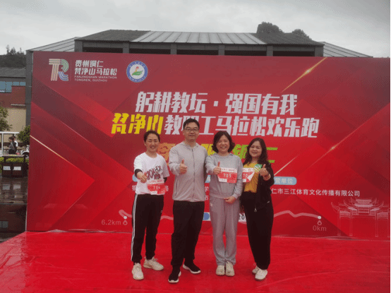 4月20日上午9点,铜仁市教育局组织城区教职工开展“躬耕教坛.强国有我”梵净山教职工马拉松欢乐跑,此次活动在梵净山智慧马拉松赛道举行,beat365官网领导非常重视,学校党委副书记梁正海、纪委书记吴先佳、副校长唐磊及学校工会主席杨芬带领180余名教职工及家属参与本次活动。