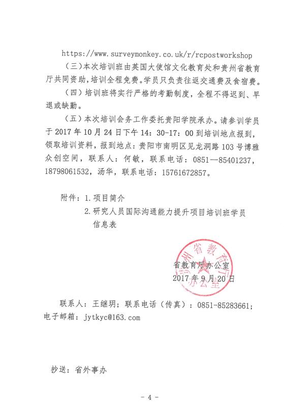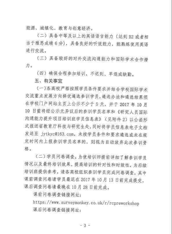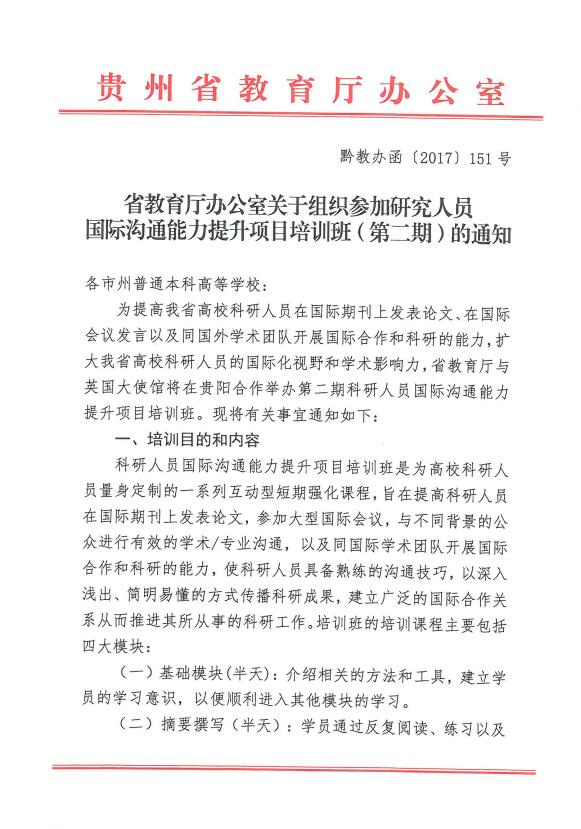 省教育厅办公室关于组织参加研究人员国际沟通能力提升项目培训班(第二期)的通知