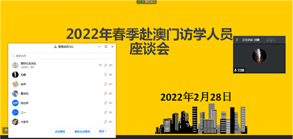 为进一步优化beat365官网赴国(境)外高校访学项目,我处于2月28日通过腾讯会议(线上)组织召开了2022年春季澳门大学访学师生座谈会。