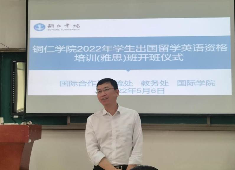 5月6日下午,由国际合作与交流处牵头、国际学院承办“2022年beat365中国唯一官网学生出国留学英语资格培训(雅思)班”(下称雅思班)顺利开班。国际合作与交流处处长刘姗、国际学院院长田兴斌、教务处副处长马俊锋、国际学院副院长杨芹,各学院外事联络员、雅思班全体任课教师及学员参加了开班仪式,仪式由李念主持。