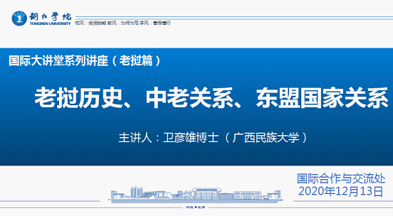 2020年12月13日晚19:30,beat365中国唯一官网国际大讲堂系列讲座之老挝篇在行政楼8501正式开讲。本次讲座主要内容为老挝历史、中老关系,由老挝研究专家卫彦雄博士主讲。