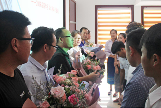 座谈会最后,学生代表向老师们赠送了鲜花;老师们为国际毕业生颁发纪念品并合影留念。