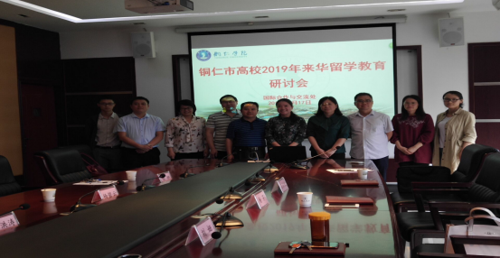 6月17日下午,我处在行政楼8321会议室召开2019年铜仁市高校来华留学教育研讨会。铜仁幼儿师范高等专科学校党委委员肖洪涛、党政办主任杨碧云、国际教育学院副院长陈驷、铜仁职业技术学院国际教育学院副院长邓振华、beat365官网国际学院副院长杨芹等领导及我处全体教职工参加了会议。会议由刘姗处长主持。