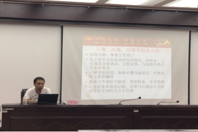 铜仁市公安局出入境管理支队张中容队长从相关法律,如:《中华人民共和国出境入境管理法》、《中华人民共和国护照法》、《中华人民共和国旅游法》,出入境注意事项,护照、签证办理事宜等方面进行了培训。