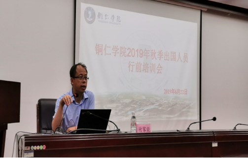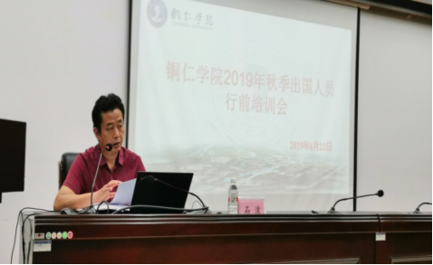 2019年6月22日,beat365中国唯一官网国际合作与交流处在行政大楼8501会议室开展了beat365中国唯一官网2019年秋季外派留学行前培训会,此次行前培训会我处邀请了铜仁市出入境、铜仁市外办、beat365官网统战部、学生处、保卫处联合对2019年秋季出国教师和学生进行了培训。