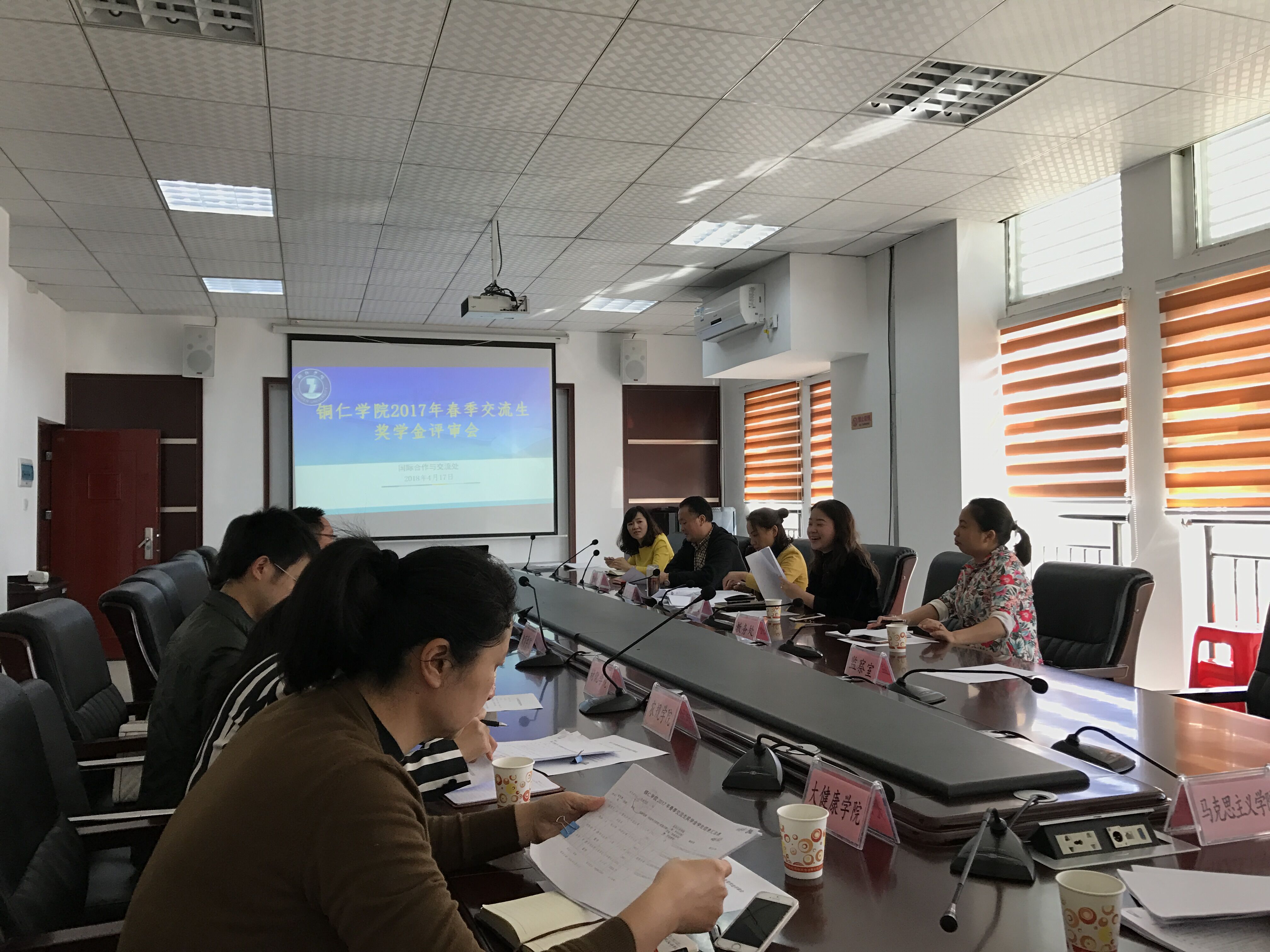 为激发我校学生学习热情,引导他们积极进取、奋勇前行,4月17日,我处在行政楼8222会议室组织召开“2017年春季交流生奖学金评评审会”及“2018年汉语水平考试(HSK)奖学金评定会”,评定小组由学生处、教务处、学生资助中心等部门及各二级学院组成。