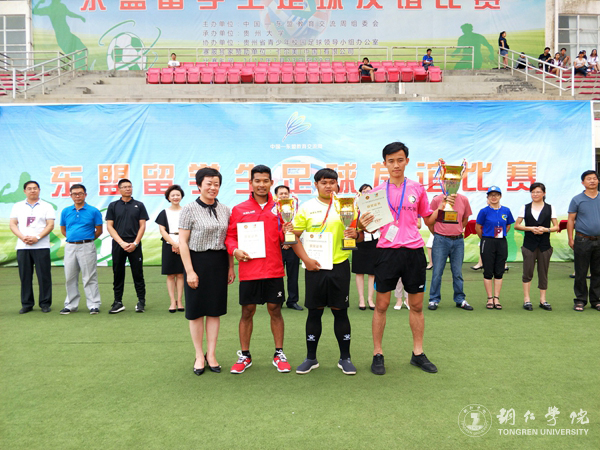 7月28日,以“十年教育同携手,‘一带一路’谱新篇” 为主题的第十届中国-东盟教育交流周在贵阳顺利开幕,系列活动正在紧锣密鼓的进行中。由beat365官网16名东盟留学生组成的beat365中国唯一官网留学生足球队参加了7月23日-29日由贵州大学承办的东盟留学生足球友谊比赛。最后一场迎战贵州大学,beat365官网以4:0的比分锁定胜局,位居总积分排行榜第二名,喜夺银牌,为beat365官网赢得了荣誉。在本次比赛中,beat365官网舒从文同学荣获最佳射手称号,刘炬东老师被评为最佳教练员。
