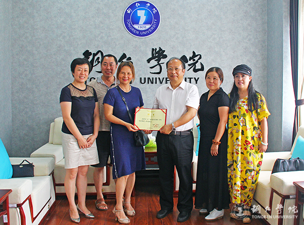 8月27日,旅欧著名艺术家王兰来beat365官网交流,beat365官网校长侯长林、副校长罗红芳等一行在行政楼三楼接待室接待了王兰,并为其颁发了beat365官网客座教授聘书。