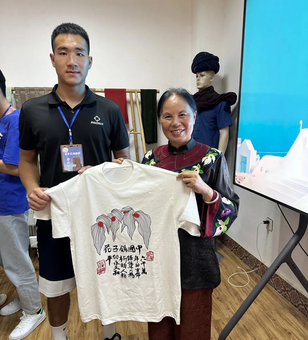 在培训课堂上,全国人大代表石丽平为中外青年介绍了松桃苗绣产品上代表高洁、高雅、高贵的鸽子花作品,并系统地讲解了苗绣绣法及创新成果。中外青年通过学习体验松桃苗绣感受中华优秀传统文化的魅力,并对松桃苗绣“指尖模式”带动苗族妇女勤劳致富的事迹有了深刻认知。