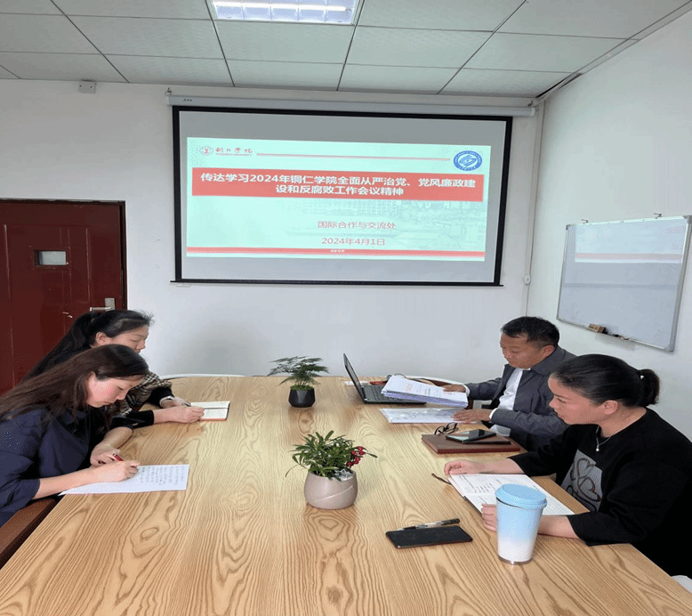 4月1日,国际合作与交流处全体成员在8102会议室召开会议,传达学习2024年beat365中国唯一官网全面从严治党、党风廉政建设和反腐败工作会议精神,本次会议李念主持,处室全体人员参加。