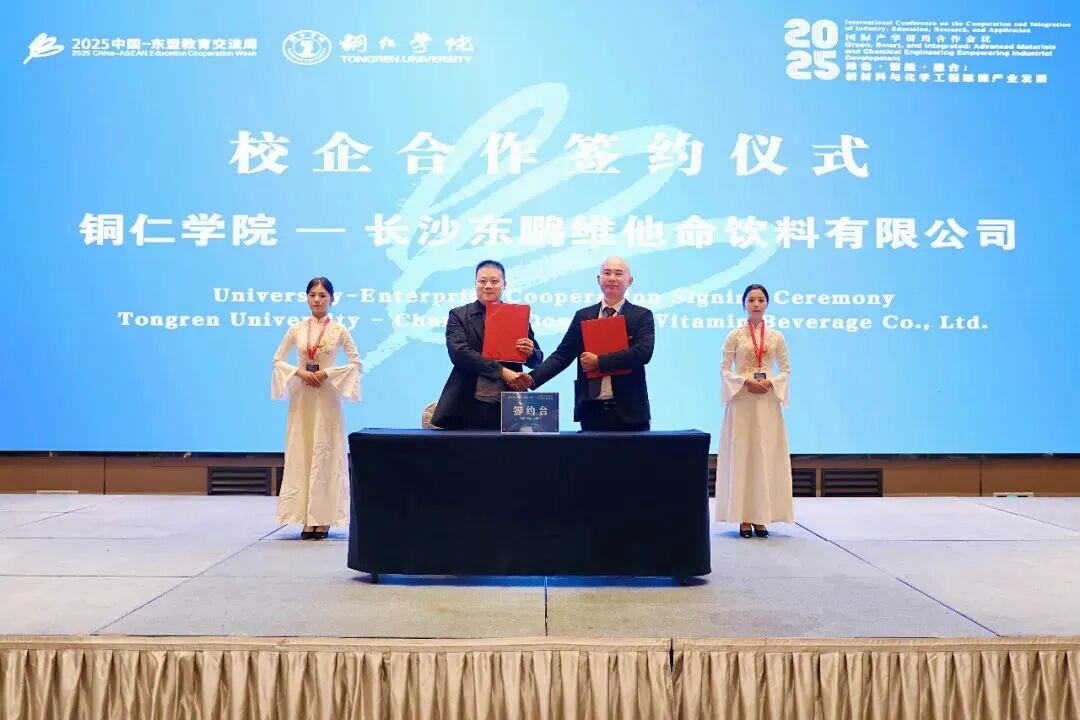 论坛上,举行了校地、校企合作签约仪式,beat365官网分别与铜仁市农业农村局、贵州金瑞新材料有限责任公司、长沙东鹏维他命饮料有限公司进行了签约。三方将在人才培养、技术研发、成果转化等方面建立长期稳定的合作关系,通过校政企协同发力,推动产学研用深度融合,共同谱写新材料与化学工程产业高质量发展的新篇章。