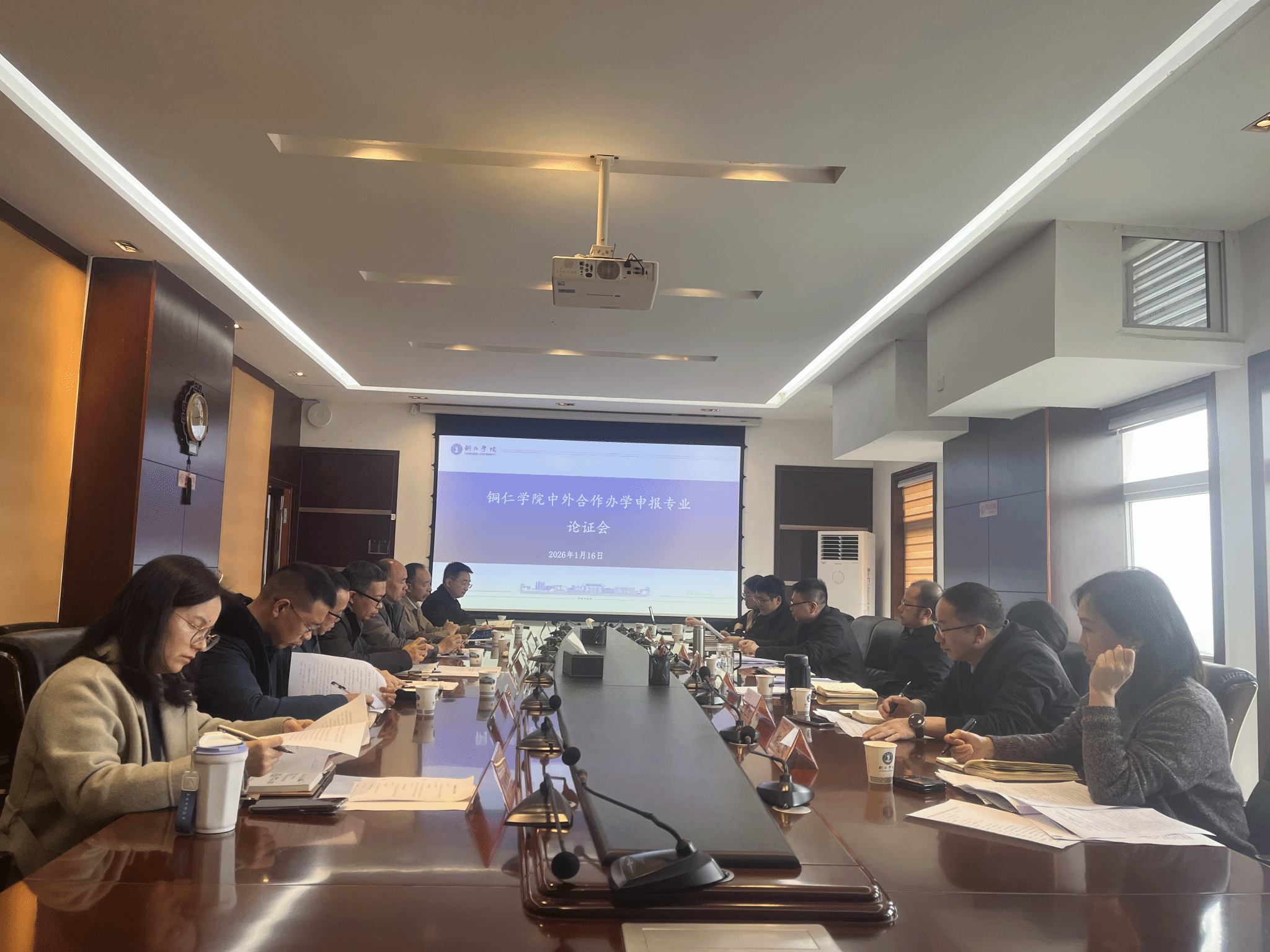会议伊始,副校长余乐正围绕中外合作办学相关工作进行全面介绍。随后,国际合作与交流处处长刘姗就申报工作作专题汇报,从办学必要性、全国及省域发展现状、学校筹备进展、实践推进建议四个维度,进行系统梳理与深入分析,为与会人员清晰呈现了申报工作的完整思路和实施路径。