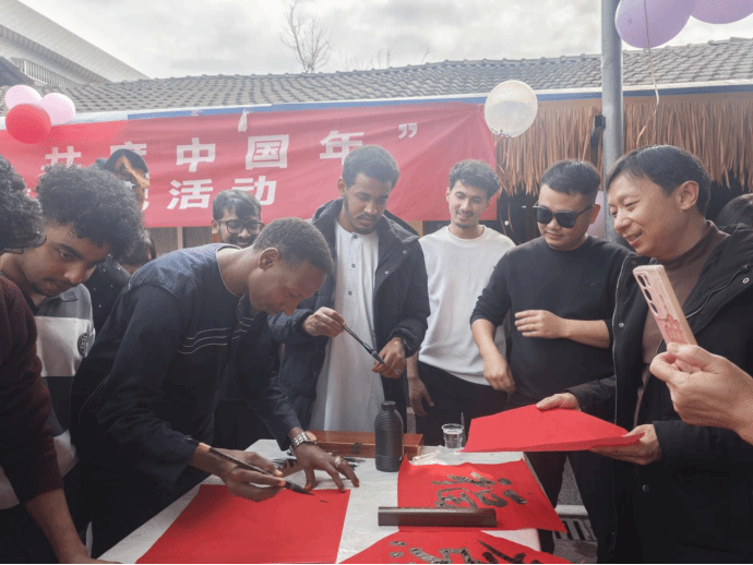 活动在龚静副校长的致辞中拉开帷幕,她向留学生们介绍了中国春节“团圆和睦”的文化内核,并为留学生送上马年新春祝福。随后,留学生有序体验年俗活动,大家在现场书写新春祝福语,一笔一画间,感受着中国书法的魅力与新春吉祥的寓意。