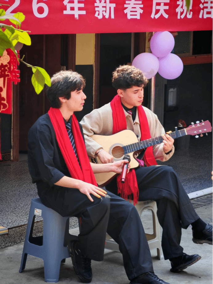 活动现场,来自各个国家留学生带来了精彩的节目。塔吉克斯坦学生的吉他弹唱、老挝学生的中文朗诵、缅甸学生的缅语合唱以及布基纳法索学生的中文合唱,多元文化交融碰撞,赢得现场阵阵掌声。节目表演期间还穿插着紧张刺激的抽奖环节,郑刚为中奖同学颁发了奖品。文艺表演后,兼顾中西口味的暖心团圆宴开启,师生围坐畅谈,在美食中感受团圆年味。